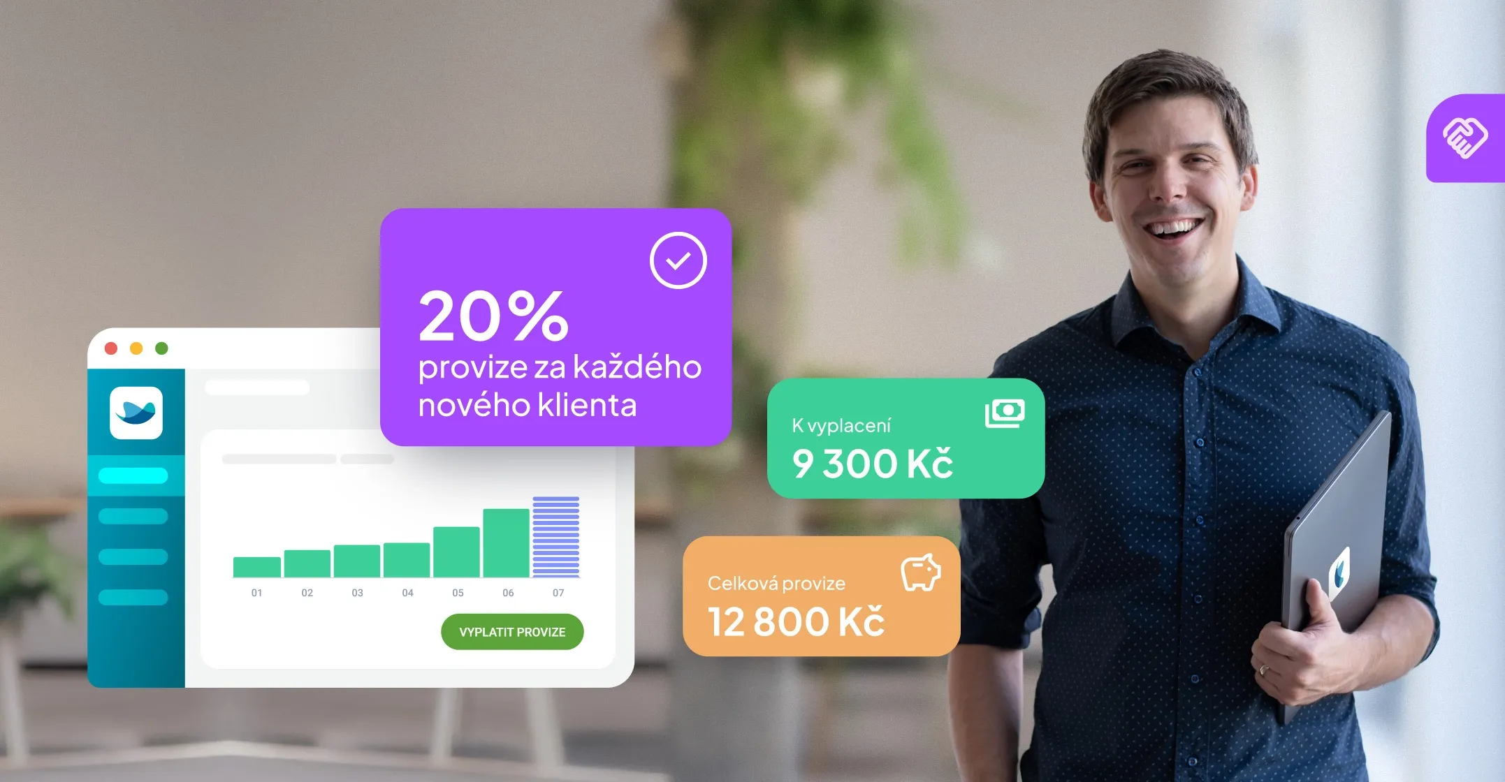 Jednoduchý deal: za každého nového klienta vám pošleme 20% provizi z každé jeho platby po dobu 12 měsíců. Váš známý navíc do začátku dostane 20% slevu na první platbu.